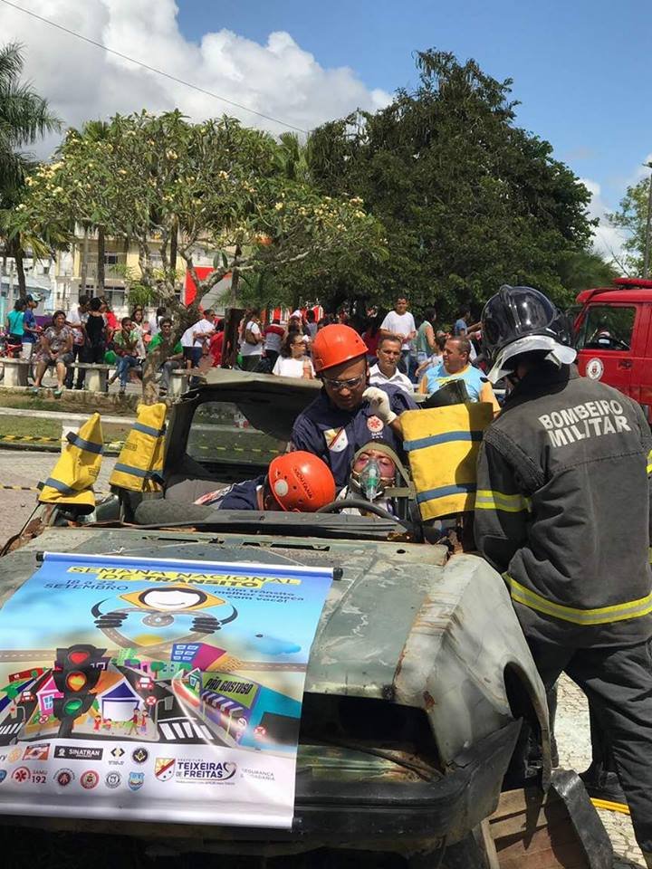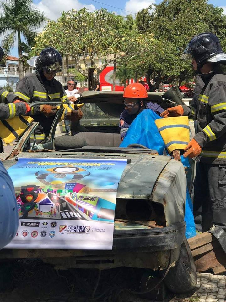 As 09:00 h da manhã de 21 de setembro, pessoas que transitavam pela praça da Bíblia em Teixeira de Freitas ficaram admiradas com um cenário que parecia real, elas foram surpreendidas com o movimento de viaturas do corpo de bombeiros, ambulância do SAMU, carros de polícia, guardas de trânsito, guarda municipal , uma grande multidão e a trilha sonora das sirenes que indicavam que algo grave aconteceu, no centro da agitação, um veiculo amassado e uma vitima presa nas ferragens, e a pergunta que não quer calar, afinal de contar O QUE É ISSO ?