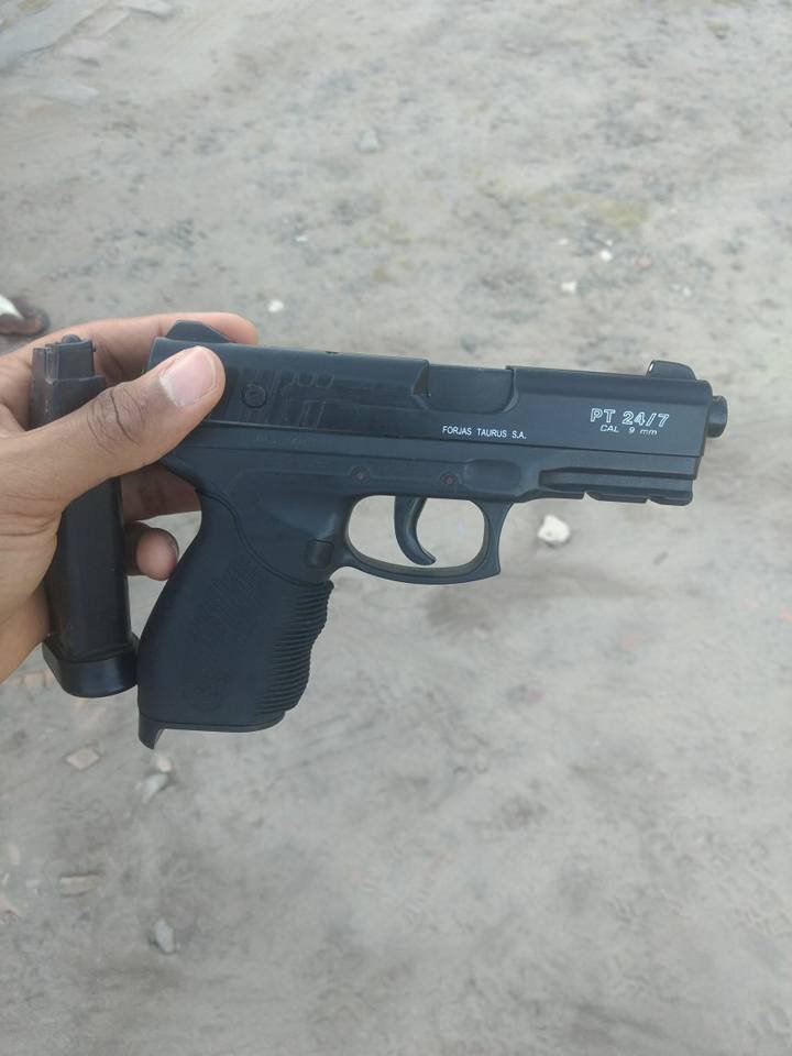 ➡01 (um) simulacro de pistola Taurus, modelo 24/7, calibre 9mm;