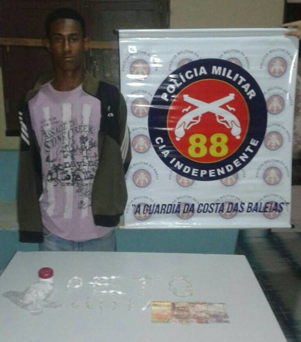Durante a abordagem, os militares prenderam em flagrante ADENILSON DA CONCEIÇÃO RAMOS, vulgo “Roleiro”, 18 anos, e com o mesmo foi apreendido 22 (vinte e dois) “papelotes” de cocaína, 84 (oitenta e quatro) “pedras” de crack e R$ 45,00 (quarenta e cinco reais) em espécie.