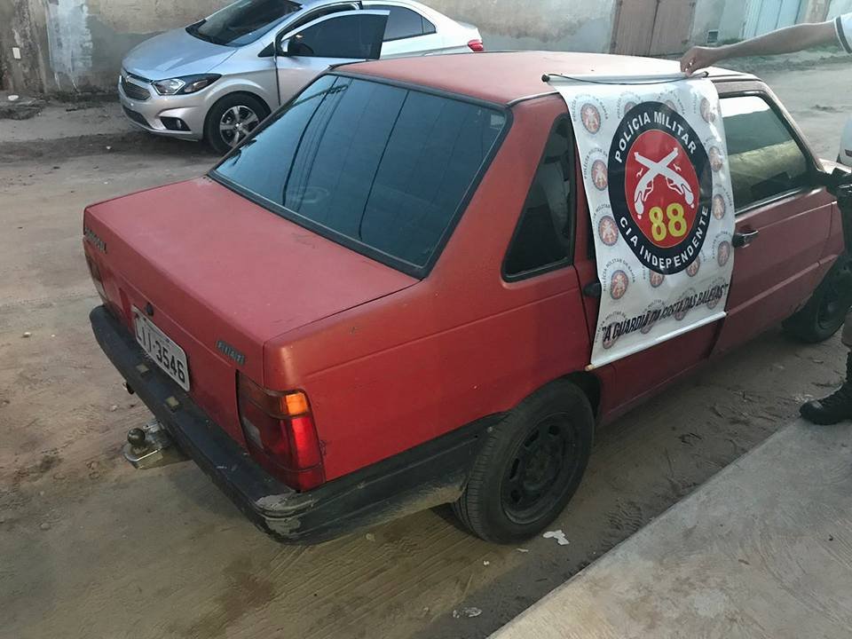 ➡01(um) veículo, Fiat Premium, placa policial LII 3546, de cor vermelha com restrição de furto e roubo.