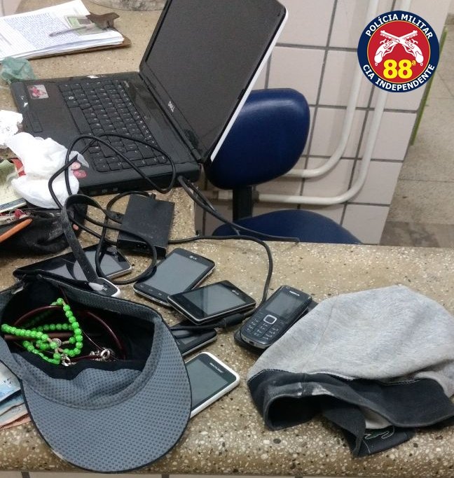 Após o recebimento de uma denúncia anônima, os militares deslocaram-se até o referido endereço, onde após uma revista, encontraram 10 pedras de crack, 01 porção de maconha de 08 gramas, 01 porção de cocaína de 05 gramas, a quantia de R$ 225,00 em espécie, 09 aparelhos celulares, 01 notebook e farto material para o embalo da droga.