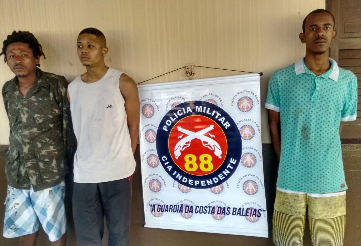 Maiq Suel Calixto Santos, de 30 anos, Arlei Rosa Santos, vulto “Boby”, de 22 anos e Emanuel Santos Miranda, vulgo “Neneu”, de 19 anos foram presos na tarde de segunda feira, (14), na travessa Teixeira de Freitas, no bairro Japira, em Alcobaça, acusados de tráfico de drogas.