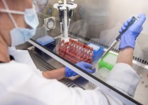 Pesquisadora de Oxford faz análise da vacina desenvolvida para o coronavírus, em 25 de junho — Foto: John Cairns, University of Oxford via AP