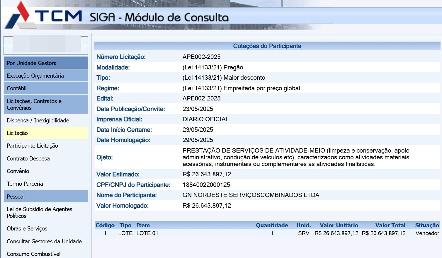 O prefeito de Caravelas, Adauto Ronaldo Azevedo Da Costa, homologou no último dia 29 de maio de 2025, a licitação número APE002-2025, em favor da empresa GN NORDESTE SERVIÇOS COMBINADOS LTDA, CNPJ: 18.840.022/0001-25, com endereço comercial à Rua AVENIDA TANCREDO NEVES, 1632, EDIFÍCIO S TRADE CENTER OUTROS TORRE NORTE SALA 313, BAIRRO CAMINHO DAS ÁRVORES EM SALVADOR, pelo valor de R$ 26.643.897,12 (vinte e seis milhões seiscentos e quarenta e três mil oitocentos e noventa e sete reais e doze centavos), para PRESTAÇÃO DE SERVIÇOS DE ATIVIDADE-MEIO (limpeza e conservação, apoio administrativo, condução de veículos etc), caracterizados como atividades materiais acessórias, instrumentais ou complementares às atividades finalísticas.