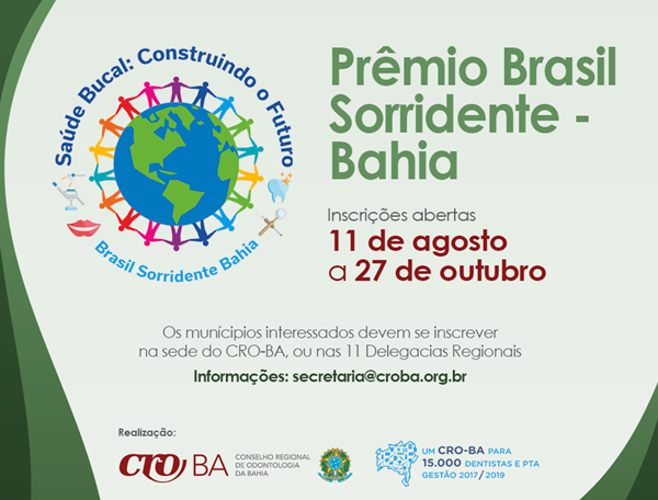O Conselho Regional de Odontologia do Estado (CRO-BA) já abriu as inscrições para o Prêmio Brasil Sorridente – Bahia. As prefeituras interessadas precisam ter em suas cidades pelo menos 50 mil habitantes e têm até o dia 27 de outubro para participar. O prêmio será entregue no dia 24 de novembro e vai avaliar vigilância em saúde bucal, desprecarização, remuneração, educação permanente, biossegurança, além do plano de gerenciamento de resíduos biológicos. “O objetivo do prêmio é fortalecer a gestão de saúde bucal na Bahia, estimular os municípios a melhorar o atendimento à população e também valorizar os profissionais da Odontologia”, explicou o presidente da comissão de Políticas Públicas do CRO-BA, Mateus Dias.
