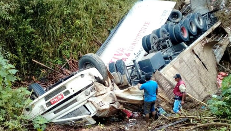 Na noite de quarta feira, (02), um acidente envolvendo um caminhão baú deu um grande susto ao seu condutor no km 739 da BR 101, entre as cidades de Itabela e Itamaraju.