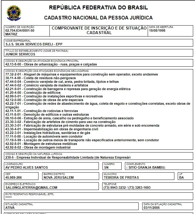 A empresa, segundo o site da Receita Federal, tem como proprietário o Sr. Salustiano Júnior Santos Silva, e, embora fundada em 1998, foi reativada somente em 10 de junho de 2015 , cinco meses antes de começar a vencer as licitações na cidade de Lajedão.