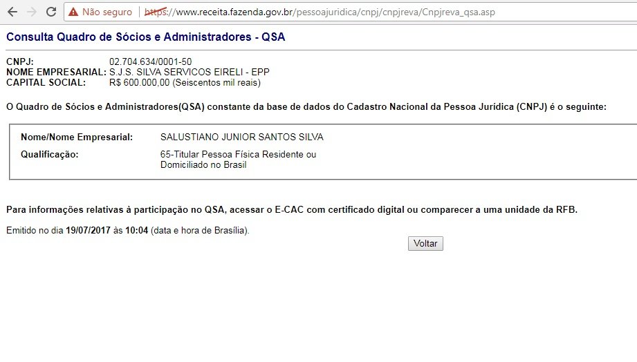 Nossa equipe de reportagem esteve no endereço informado no site da Receita Federal, e constatou que a no local, funciona uma fábrica de bloquetes, que pertence ao Sr. Salustiano, que é filiado ao Partido PV, da coligação do atual prefeito de Lajedão, HUMBERTO CARVALHO CORTES.