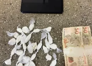 Durante a busca pessoal, os policiais encontraram R$100 em espécie e 30 papelotes de cocaína no bolso do short de Luan. Ele confessou ser o proprietário da droga, admitindo também sua venda na região.