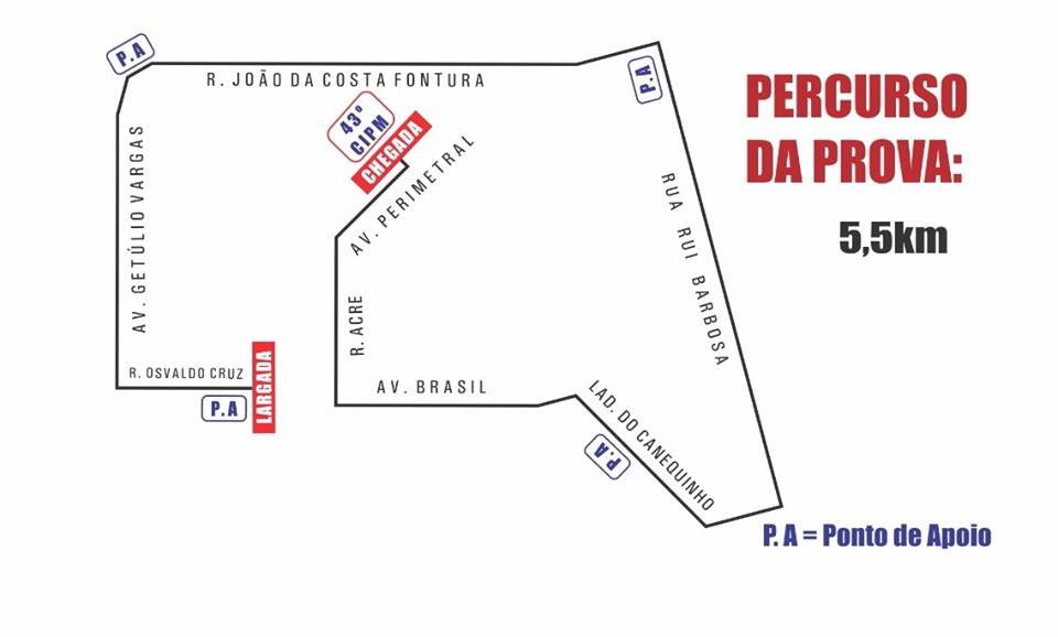 A Corrida será realizada no dia 27 de agosto de 2017 (domingo), com a largada na Praça Castelo Branco, percorrendo as principais ruas e avenidas da cidade, e chegada na sede da 43ª CIPM, totalizando um percurso de 5,5 Km (cinco quilômetros e meio). A competição em questão terá o limite máximo de 300 (trezentos) participantes, com previsão de medalhas de participação para todos os inscritos que concluírem o percurso. Ainda serão premiados com troféus e brindes os (3) três primeiros colocados das categorias masculino geral e feminino geral, e com troféus o primeiro colocado das categorias: máster masculino/feminino (a partir de 45 anos), militar feminino/masculino e portador de necessidade especial masculino/feminino.