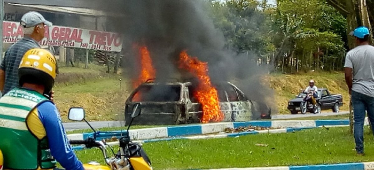 O veículo de uma funerária de Teixeira de Freitas, foi incendiado no final da manhã de sexta-feira, (13), na BR 101, nas proximidade do Trevo de Itamaraju.