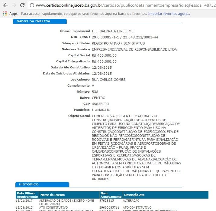 O que nos chama a atenção nesta licitação é o fato da proprietária da empresa, cujo capital social é de R$ 400.000,00 ( quatrocentos mil reais), e que foi aberta dia 12 de agosto de 2015, identificada segundo o site da receita federal como Iandra Leão Bladrae, trabalha como caixa de uma loja da Móveis Simonetti na cidade de Itamaraju.