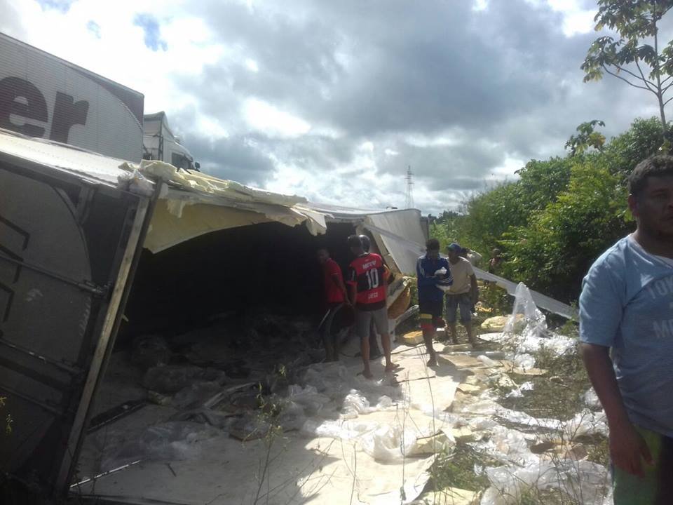 Populares que trafegavam pelo local, saquearam parte da carga, que ficou exposta após o acidente. Segundo a PRF,