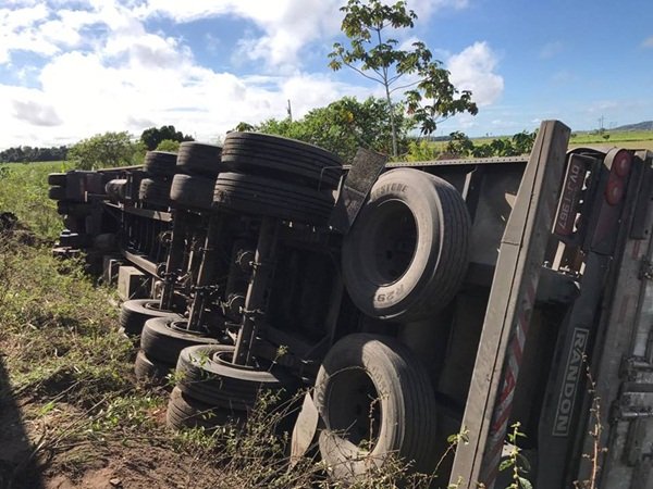 O condutor da carreta, teria tentado desviar-se do carro de passeio, onde acabou perdendo a direção do veículo e tombado na lateral da pista.