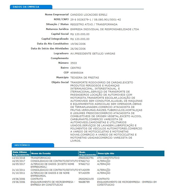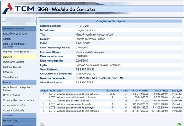 A empresa que participou sozinha e venceu o certame, foi a FERNANDES & FERNANDES LTDA. – ME, CNPJ: 08.080.901/0001-42, com endereço comercial a Avenida Getúlio Vargas, nº 3503, no centro de Teixeira de Freitas.