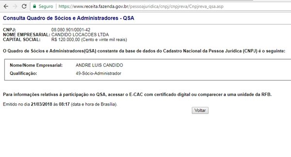 Nossa equipe de reportagem visitou a suposta sede da empresa, que teve seu registro junto a Receita Federal no dia 19 de junho de 2006, e ao chegar no local, restou constatado que no endereço, funcionava uma locadora de veículo recém instalada, e que não possui nenhum vínculo com a empresa FERNANDES & FERNANDES LTDA. – ME, ou com seu proprietário.