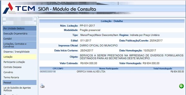 A prefeitura, contratou ainda o valor de R$ R$ 132.444,20 ( cento e trinta e dois mil e quatrocentos e quarenta e quatro reais e vinte centavos), para outros serviços gráficos com a mesma empresa, totalizando o valor de R$ 736.444,20 (setecentos e trinta e seis mil quatrocentos e quarenta e quatro reais e vinte centavos).