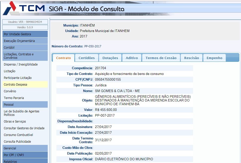 A prefeitura de Itanhém homologou através de licitação número PP-007-2017 na data de 27 de abril, o valor de R$ R$ 455.600,00 (quatrocentos e cinquenta e cinco mil e seiscentos reais), para a aquisição de GÊNEROS ALIMENTÍCIOS (PERECÍVEIS E NÃO PERECÍVEIS) DESTINADOS À MANUTENÇÃO DA MERENDA ESCOLAR DO MUNICIPIO DE ITANHÉM-BA, e licitação de número PP-017-2017, homologada em 23 de maio, o valor de R$ 70.900,00 (setenta mil e novecentos reais) para MATERIAL DE LIMPEZA, DESTINADOS A MANUTENÇÃO DAS SECRETARIAS MUNICIPAIS DESTE MUNICÍPIO, tendo como vencedora a empresa SM GOMES & CIA LTDA – ME CNPJ 09.584.755\0001-55, com endereço comercial a Avenida SADY TEIXEIRA LISBOA , 283 em Itanhém.