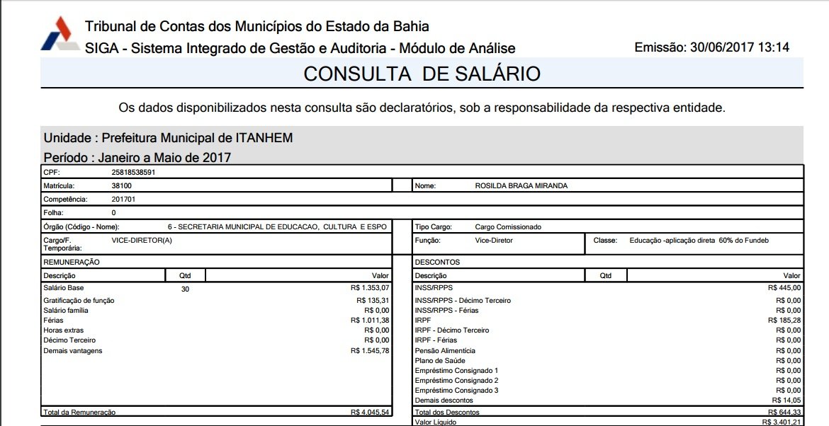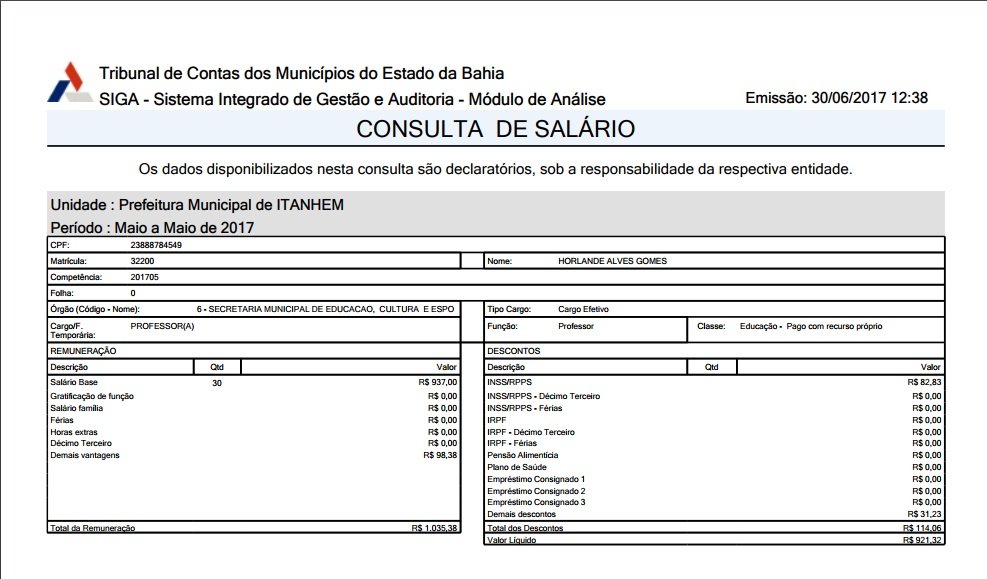 Ao consultar o site do TCM (Tribunal de Contas dos Municípios), constatamos que os proprietários da empresa, Sr. HORLANDE ALVES GOMES, é funcionário público municipal, onde ocupa a profissão de Professor efetivo e ainda, que sua sócia, Rosilda Braga Miranda, também é funcionária pública do município, onde ocupa dois cargos na função de vice diretora escolar e professora.