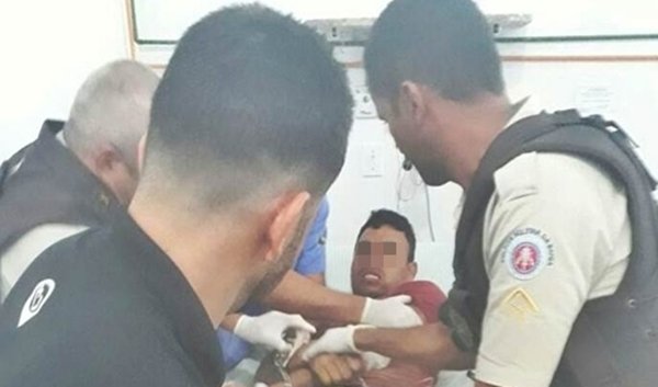 Momentos depois, Emerson teria voltado para a festa, onde acabou insultando policiais militares que estavam no local, e partiu para agressão física. O homem, acabou sendo baleado no joelho e foi socorrido para o hospital do município e transferido para o Hospital Municipal de Teixeira de Freitas, para passar por procedimentos cirúrgicos.