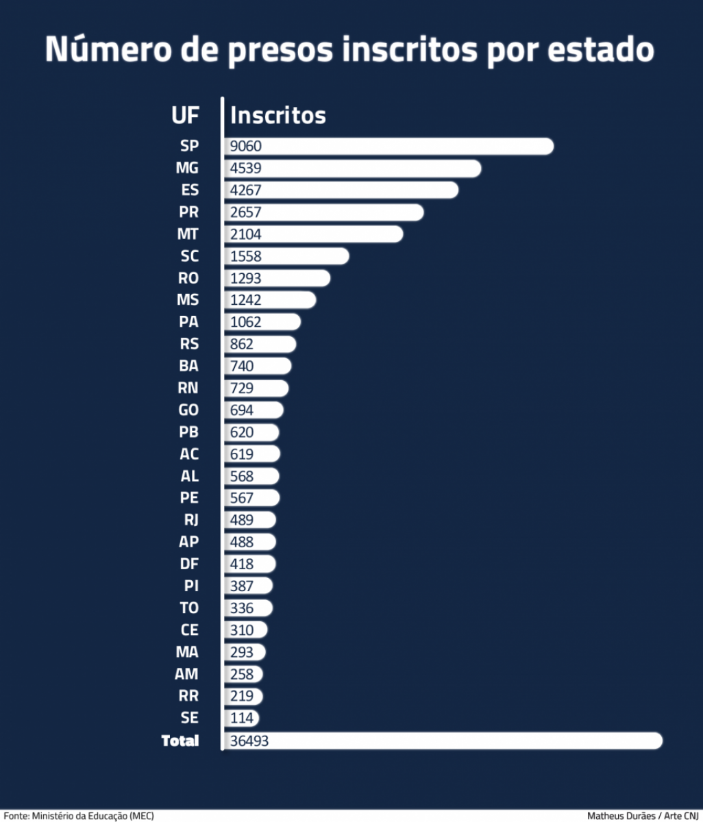 Ao menos 36,4 mil presos foram inscritos em cursos de profissionalização do Pronatec nos últimos quatro anos, segundo o Ministério da Educação (MEC). O resultado ocorre após o Conselho Nacional de Justiça (CNJ) apoiar o Poder Executivo na inclusão de detentos de todo o País no programa. Os tribunais de Justiça, por meio de grupos de fiscalização penitenciária, dão suporte para que os internos participem da qualificação profissional.