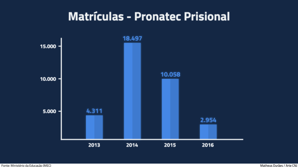 Em 2013, o governo federal ampliou o programa de formação para o sistema penal, com o Pronatec Prisional. Podem participar apenados de todos os regimes — fechado, semiaberto e aberto —, bem como egressos e condenados a medidas alternativas. O detento tem o benefício de abater um dia de pena para cada 12 horas de estudo.