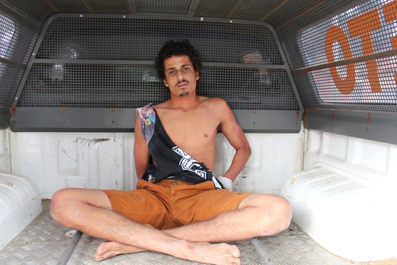 Segundo informações, uma guarnição do PETO recebeu a denúncia que o indivíduo estaria em atitude suspeita em uma residência. Os militares saíram em diligências e ao localizarem o acusado, o mesmo resistiu a abordagem, entrando em vias de fato com o militar, sendo imobilizado posteriormente pelo policial.
