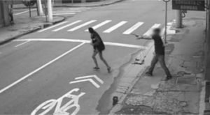 Em seguida, o homem saca a arma e dispara, pelo menos, duas vezes em direção à mulher. Depois disso, ele sai andando com a arma na mão enquanto a vítima fica caída no meio da rua.