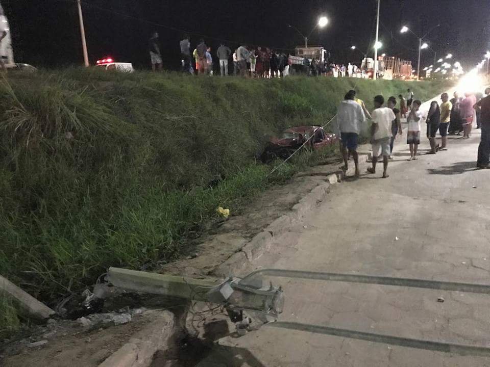 Com o impacto da batida, a vítima foi arremessada cerca de 50 metros, batendo em um poste de energia que se quebrou. O veículo, caiu no canteiro central da pista.