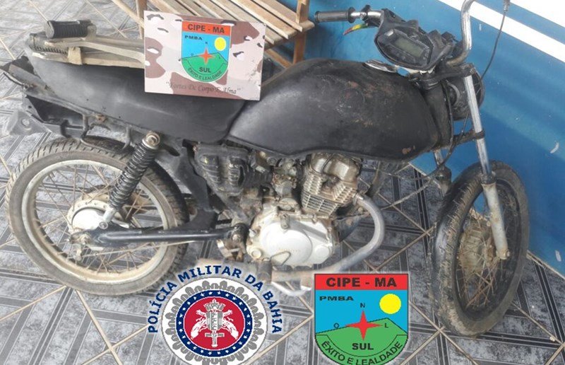 Os militares realizavam um patrulhamento ostensivo no distrito quando abordaram o suspeito que conduzia uma motocicleta Honda/Titan, cor preta sem placa de identificação.