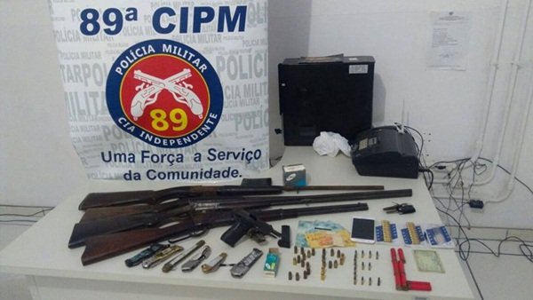 A ex-esposa do acusado informou aos policiais que na residência do mesmo havia mais armas. Prosseguindo em diligências, os policiais encontraram no interior da residência identificada como sendo de propriedade do agressor, , na Rua da Água, no Bairro Verdes Mares, 01 carabina calibre .30, 01 carabina calibre .22, com 15 munições intactas, 01 carabina calibre .32 de um cano, 01 carabina calibre .32 de 02 canos, 07 cartuchos calibre .32, um cartucho calibre .16 intacto, e 31 cartuchos calibre .380 também intactos.