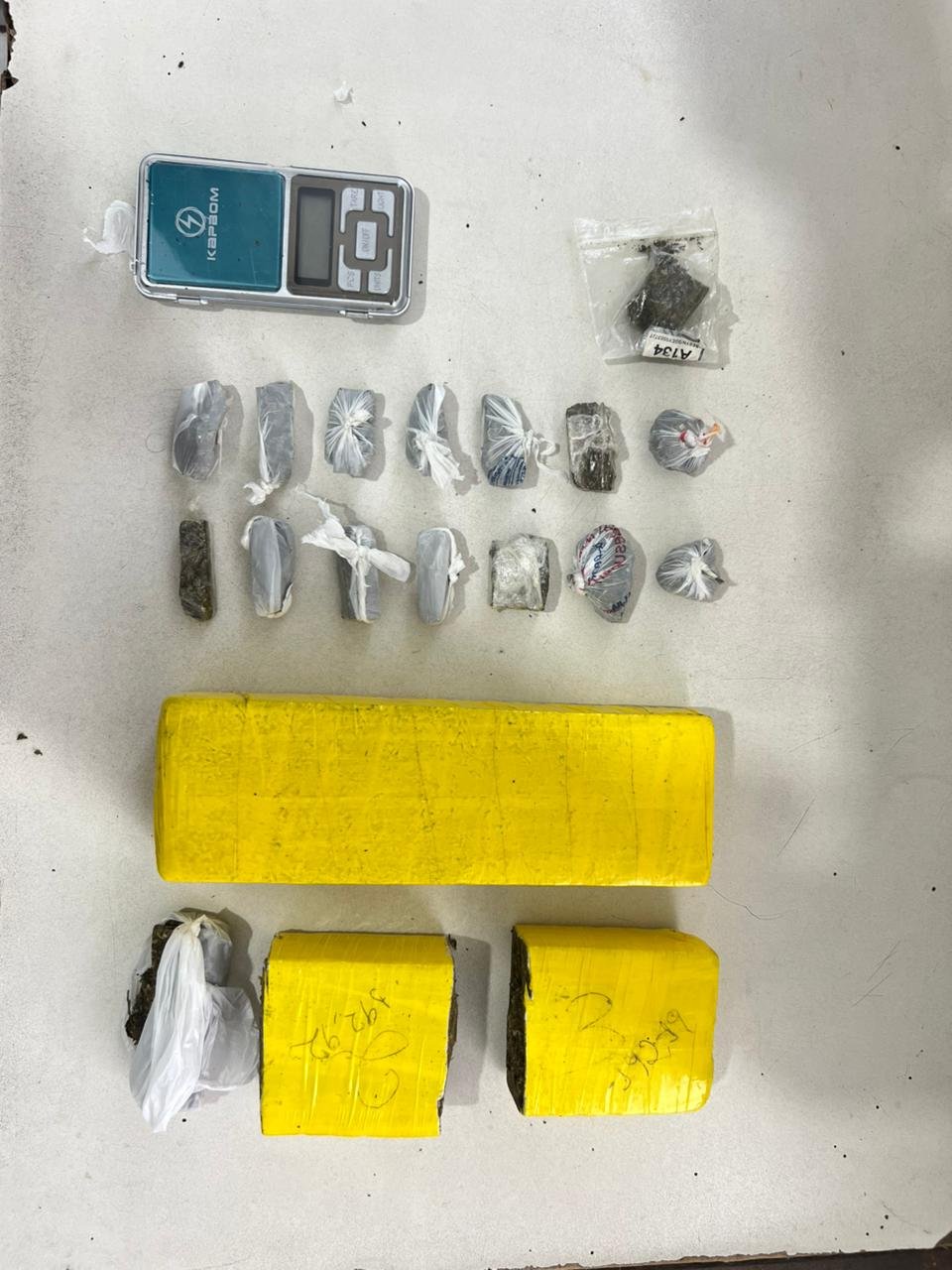 De posse das informações, as equipes montaram uma operação para verificar a veracidade da denúncia. No local, com o apoio do canil setorial da unidade, o cão policial localizou substâncias análogas à maconha em diferentes pontos da residência, além de uma balança de precisão, material comumente utilizado para fracionamento e comercialização de drogas, totalizando 1 quilo e 142 gramas do material.