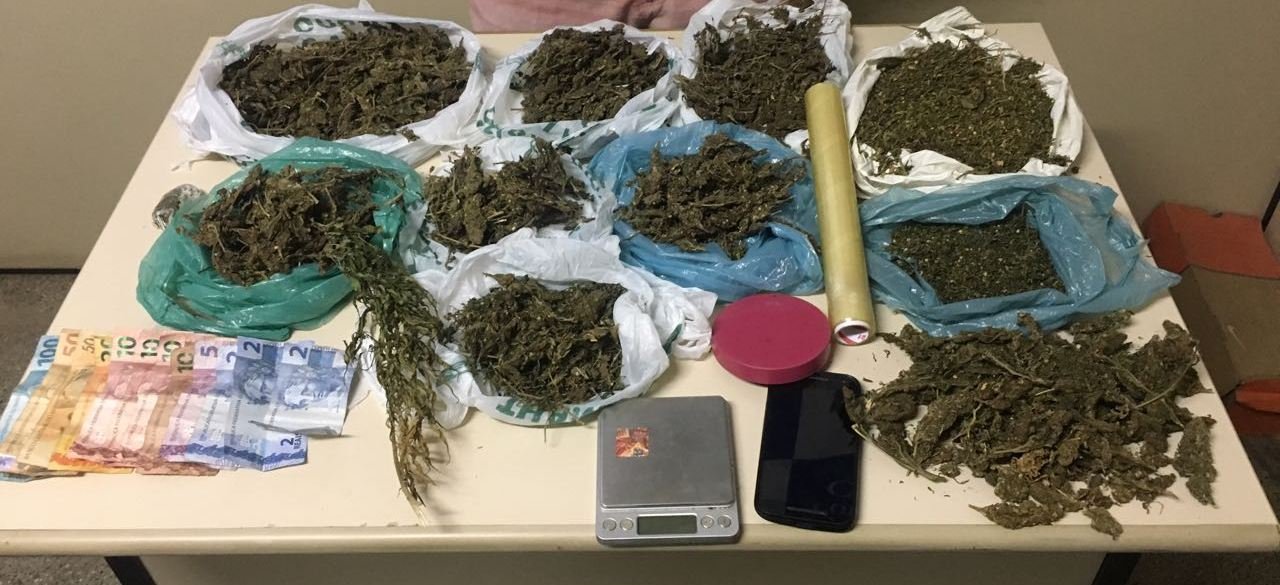 Na casa dele, a polícia encontrou dez sacolas contendo maconha, totalizando aproximadamente 1,2kg, as cartelas de LSD, a quantia de R$ 271, uma balança de precisão, um rolo de plástico e uma motocicleta. Todo material, inclusive o veículo, foram apreendidos em encaminhados para perícia no Departamento de Polícia Técnica (DPT).