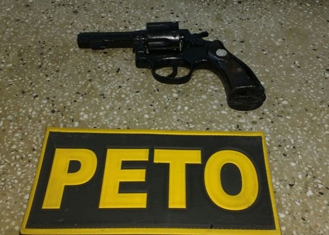 O acusado foi abordado por uma guarnição da polícia militar, que encontraram em poder do mesmo um revólver calibre 32, número de série 654744, desmuniciado.