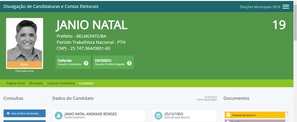 Jânio Natal é acusado de utilizar a prefeitura de Belmonte, em especial à saúde do município, para beneficiar eleitores da vizinha Porto Seguro, com intuíto de angrariar votos.