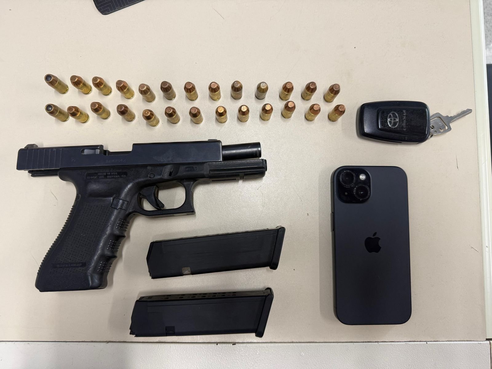 Foi realizada a aproximação e voz de abordagem, e o indivíduo tentou evadir do local, mas sem sucesso. Durante a busca pessoal, constatou-se que o indivíduo portava uma pistola Glock calibre .40 completamente carregada, com um carregador sobressalente.
