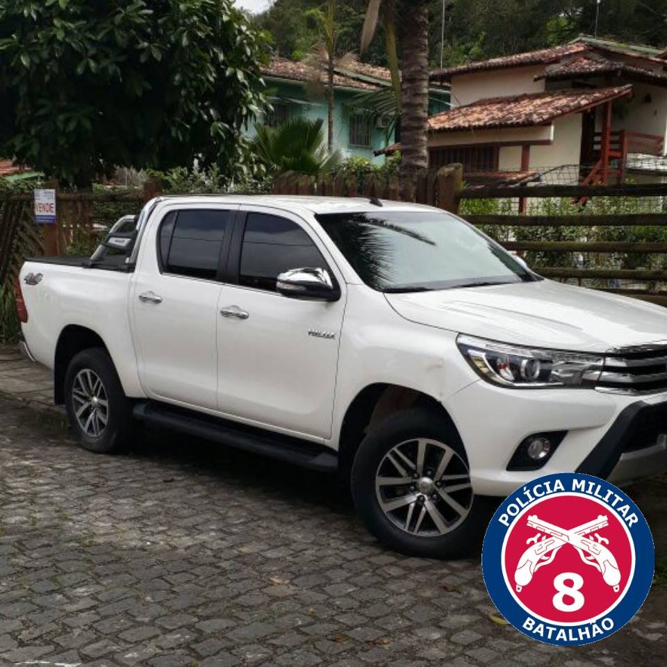 Um veículo Toyota Hilux foi encontrado sem placas de identificação, abandonado no centro de Porto Seguro na manhã de segunda-feira (18).