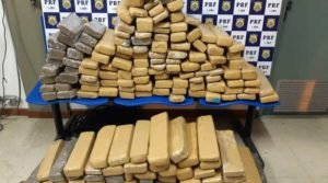 Na madrugada dessa sábado a Polícia Rodoviária Federal (PRF) apreendeu aproximadamente 142 kg de substância com características semelhantes à maconha no compartimento de bagagem de ônibus turismo que fazia o itinerário São Paulo (SP) x Caruaru (PE). O ônibus foi pego em flagrante durante uma fiscalização da PRF no KM 836 da BR 116, em Vitória da Conquista.