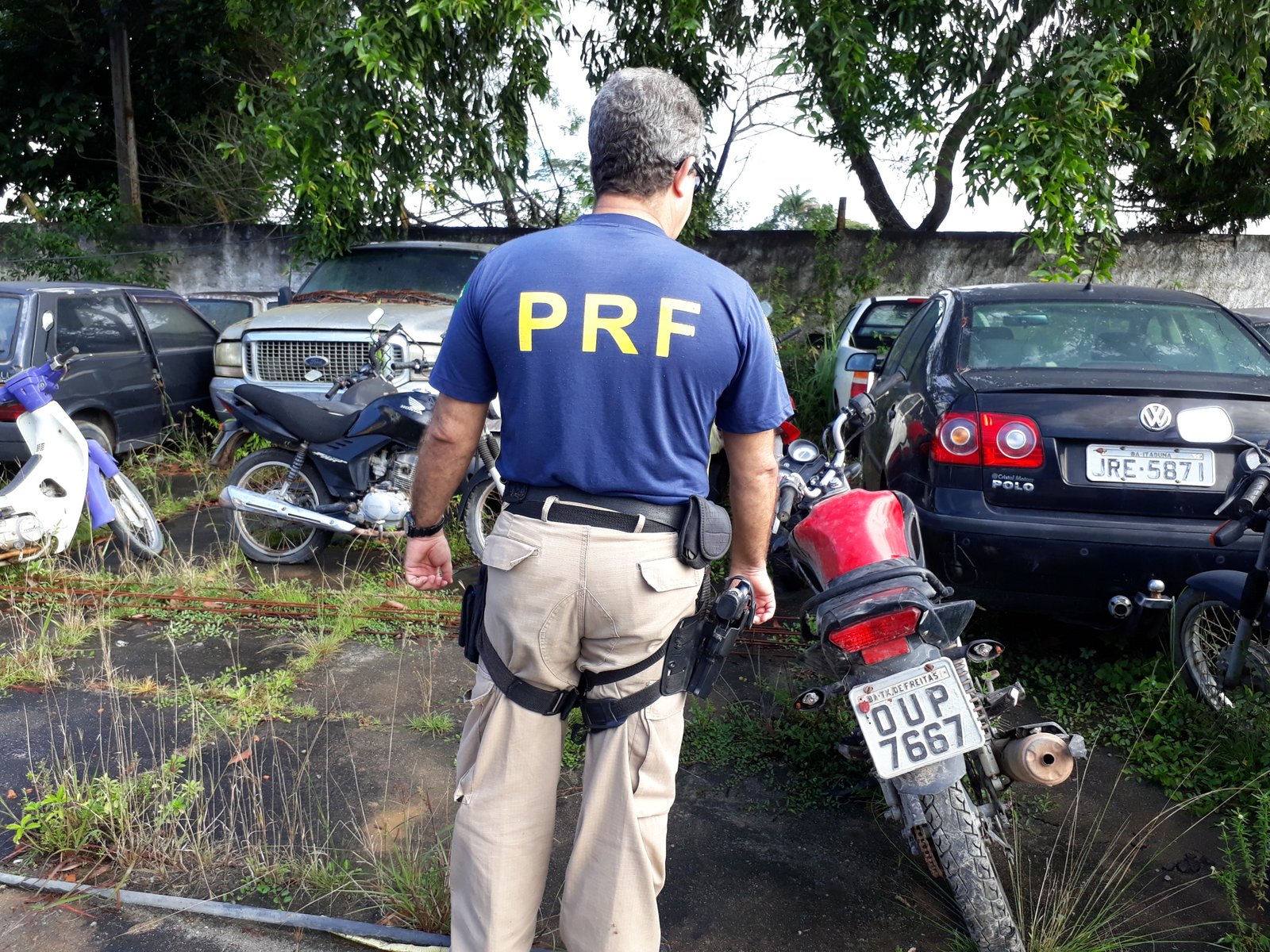 A motocicleta encontra-se no pátio da PRF, a disposição da polícia civil e do proprietário.