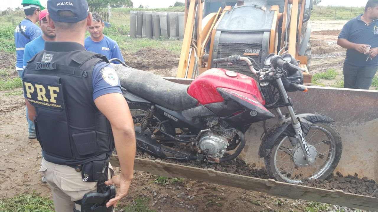 Policiais Rodoviários Federais localizaram por volta das 15 horas de quinta feira (22), uma motocicleta enterrada em um pequeno depósito de brita, nas margens da BR 101, no Km 881 em Teixeira de Freitas.