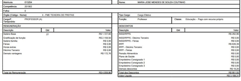 Confira o contracheque na íntegra clicando abaixo:
