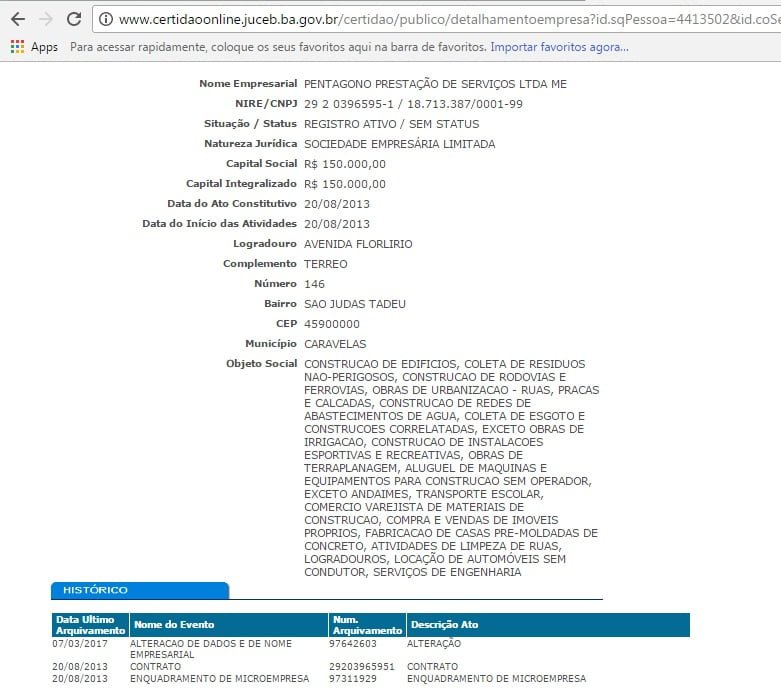 Ainda, em uma consulta na Junta Comercial do Estado da Bahia, restou comprovado que a empresa realizou no dia 07 de março deste ano, uma ALTERAÇÃO CONTRATUAL DE DADOS E NOME EMPRESARIAL.
