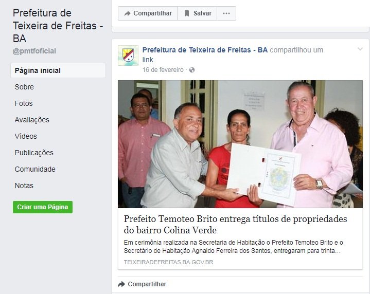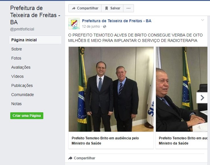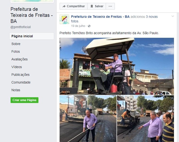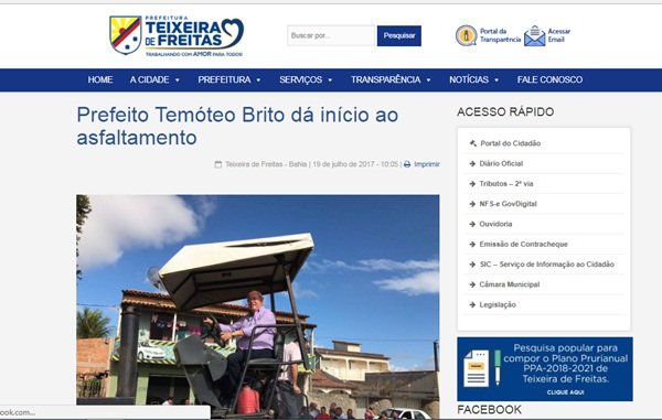 O prefeito de Teixeira de Freitas, Temóteo Alves de Brito, usou o site oficial do município para comemorar a geração de empregos através da instalação do Atacadão (um empreendimento privado da rede Carrefour), como se fosse uma conquista municipal.