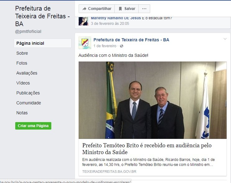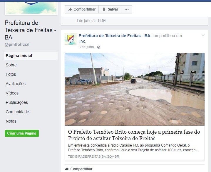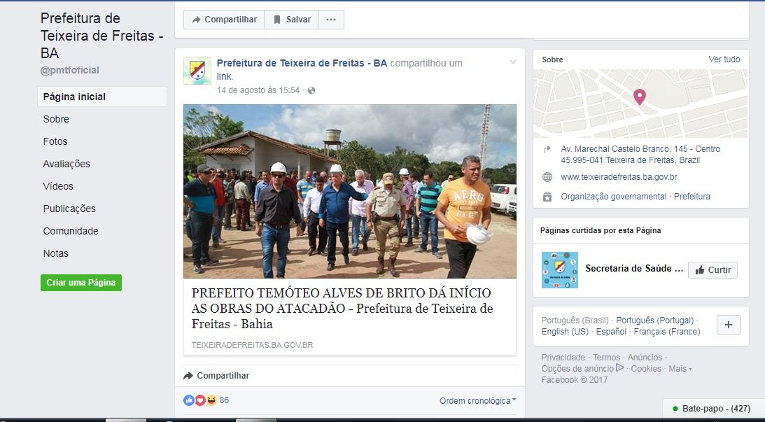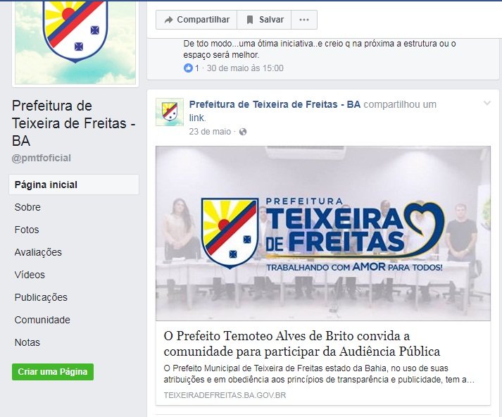 Na página oficial do município no Facebook, a exposição do prefeito continua com diversas publicações extraídas inclusive do site oficial da prefeitura.