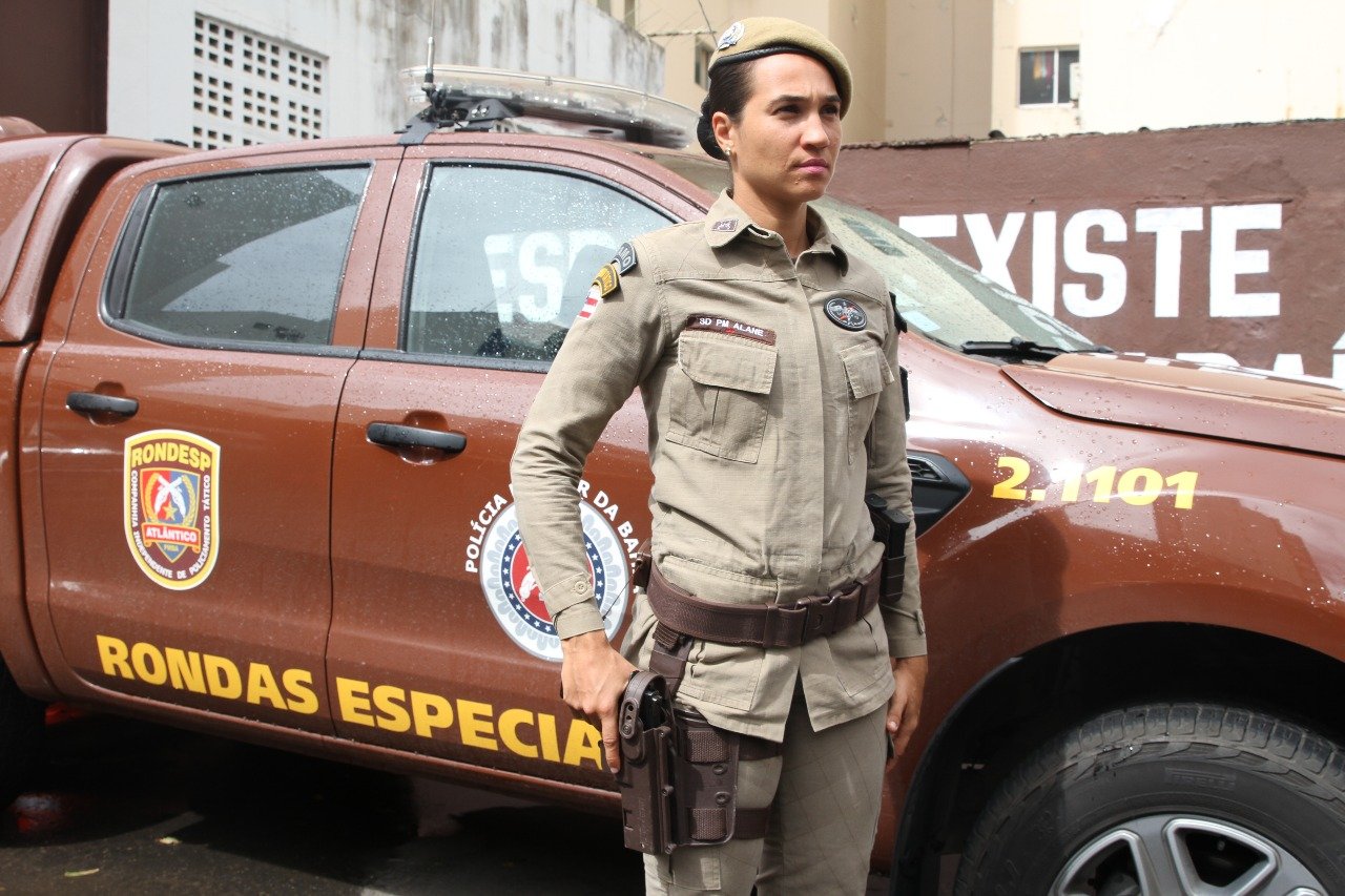 A expressão ‘sexo frágil’ não se encaixa no perfil da soldada Alana Benedetto, lotada na Companhia Independente de Policiamento Tático (Rondesp Atlântico). Educadora física, 31 anos e há seis na Polícia Militar, ela é a primeira policial militar da Bahia a se tornar especialista em Patrulhamento Tático Móvel (Patamo), subunidade do Batalhão de Polícia de Choque, criada para atuar em ações emergenciais nos bairros em situações de grandes confrontos.