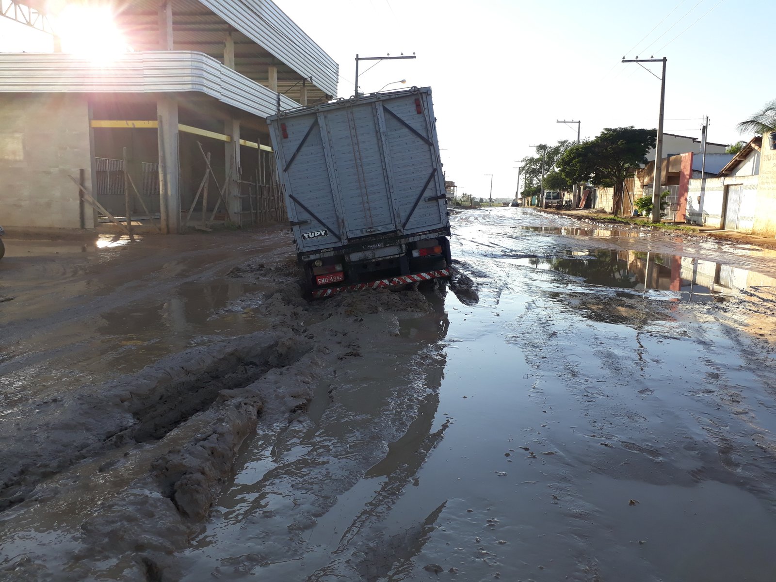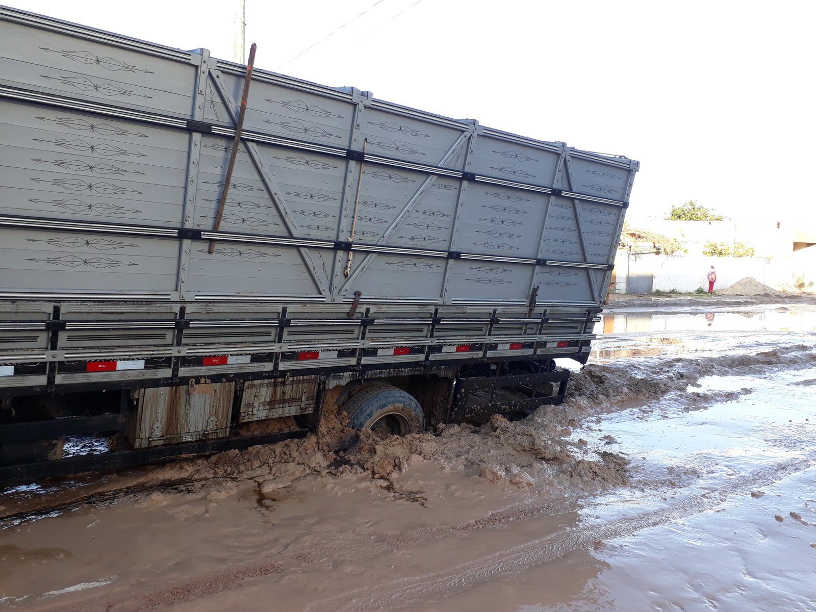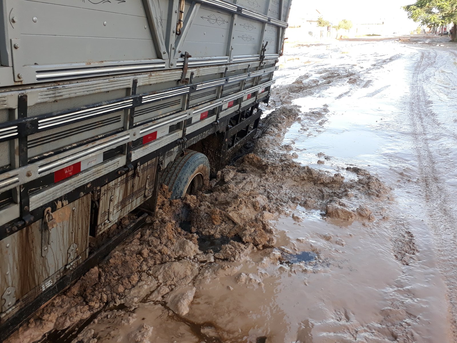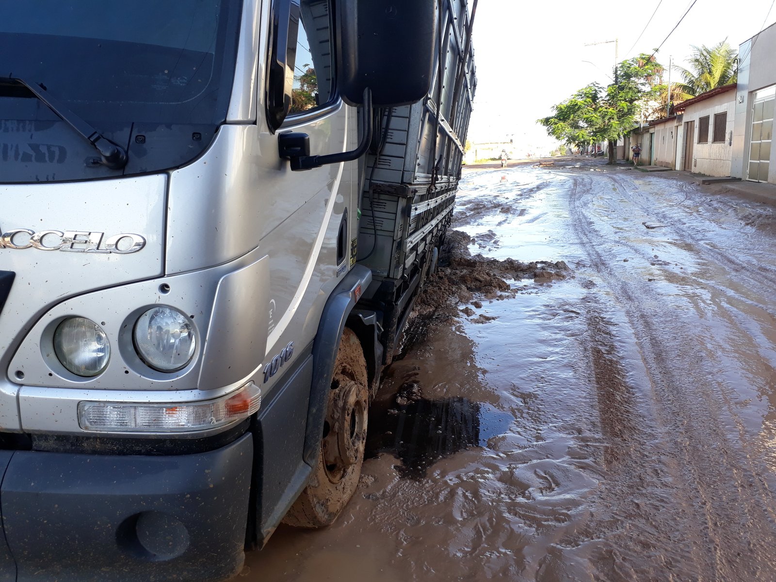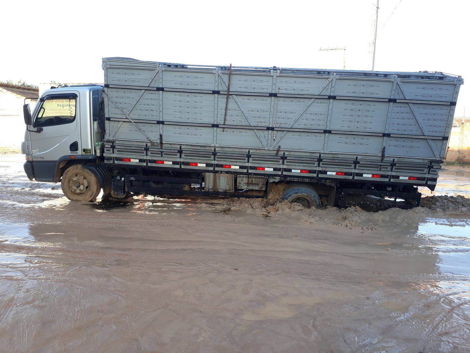 Por volta das 02 horas da manhã de sexta feira, (04), um caminhão que fazia o transporte de gado em direção ao Frisa, atolou na Avenida Vinicius de Morais, principal rua do bairro.