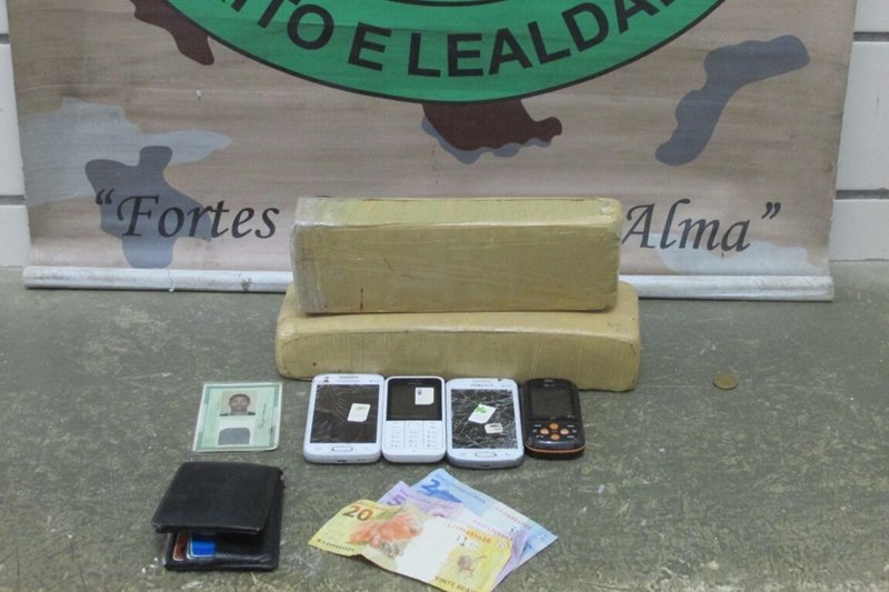 Os militares empreenderam em diligências, e localizaram a adolescente com uma mochila. Após uma revista pessoal, os policiais encontraram junto à peças de roupas, 02 tabletes prensado com cerca de 01 quilo de maconha em cada embalagem e 04 aparelhos celulares.