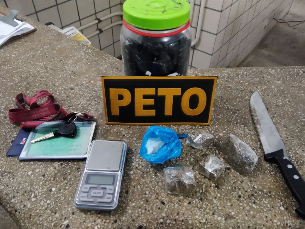 Segundo informações, o adolescente trafegava em atitude suspeita a bordo de uma motocicleta Honda\Biz, cor preta, placa policial OQE 5644, licenciada em Aracaui/MG, quando ao ser abordado, os militares encontraram dentro do baú da moto, 78 gramas de maconha, 35 gramas de cocaína, e uma 01 balança de precisão.