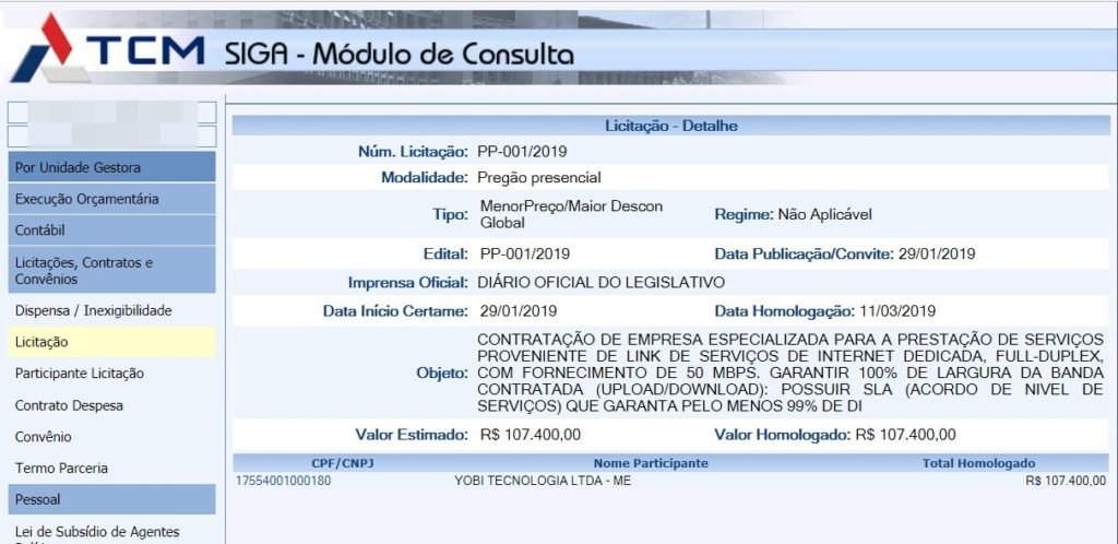 A vencedora do Certame foi a empresa YOBI TECNOLOGIA LTDA – ME, CNPJ 17.554.001/0001-80, com endereço à Rua Prudente de Morais, 139, no centro de Teixeira de Freitas.