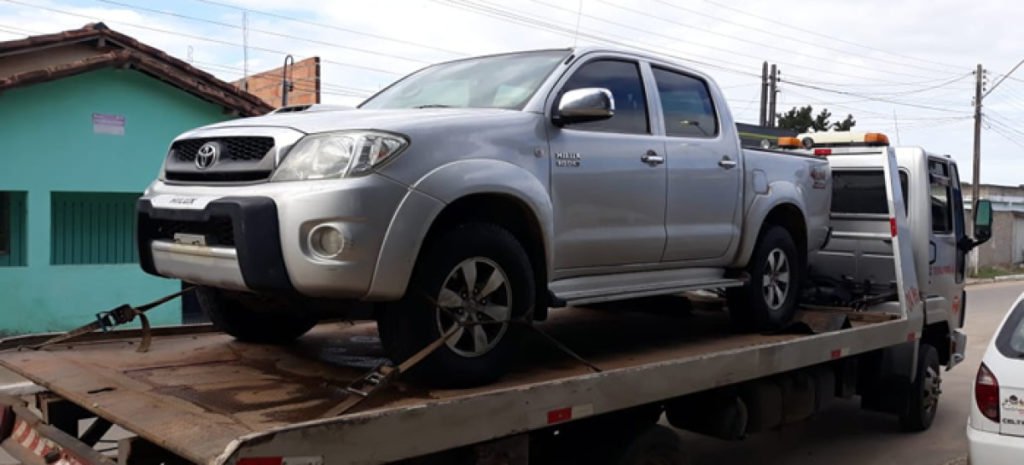 Assim que chegaram ao imóvel, que estava desocupado, os militares depararam-se com uma caminhonete Toyota Hilux, de cor prata e sem placa. Desconfiados os policiais levantaram a numeração do chassi e fizeram buscas nos sistemas que reúnem informações de veículos, momento que descobriram tratar-se de produto com restrição de roubo.